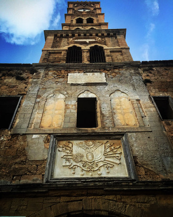 The complete coat of arms at the base of the clock tower in Acre, near Khan al-Umdan, was constructed in 1906 to commemorate the thirtieth anniversary of Abdulhamid II's ascension to the throne. This symbol is engraved in marble. Another impressive emblem can be found on the façade of the former municipal hospital on Jaffa Street in West Jerusalem, which is now the District Health Bureau.