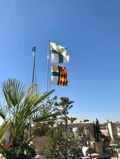 The flag of the order is hoisted near the Jaffa Gate with the personal banner of the head of the order, the order's coat of arms and the typical cross.